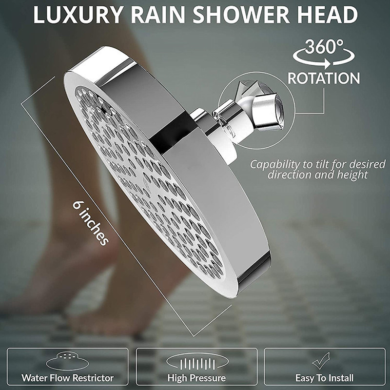 โมเดิร์น 1 สเปรย์ 6 นิ้วหัวฝักบัวก้านแข็งแบบติดผนังเดี่ยวใน Chrome